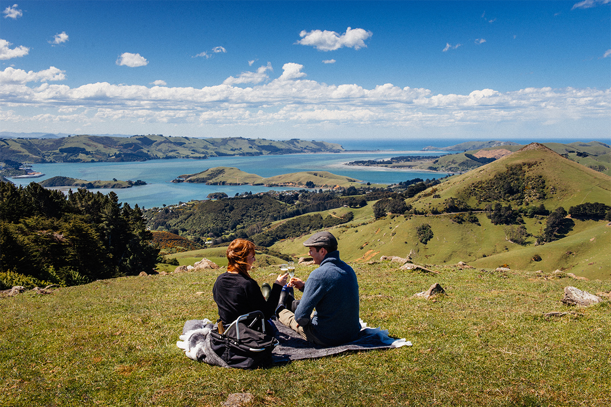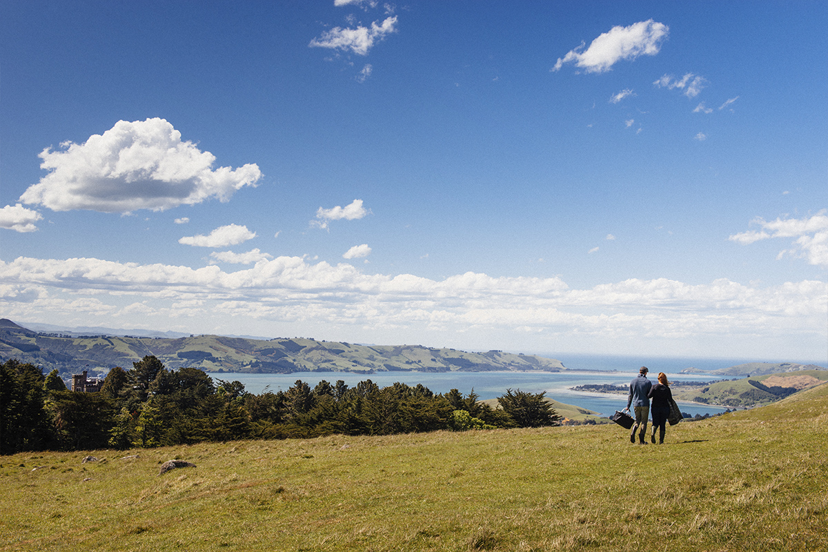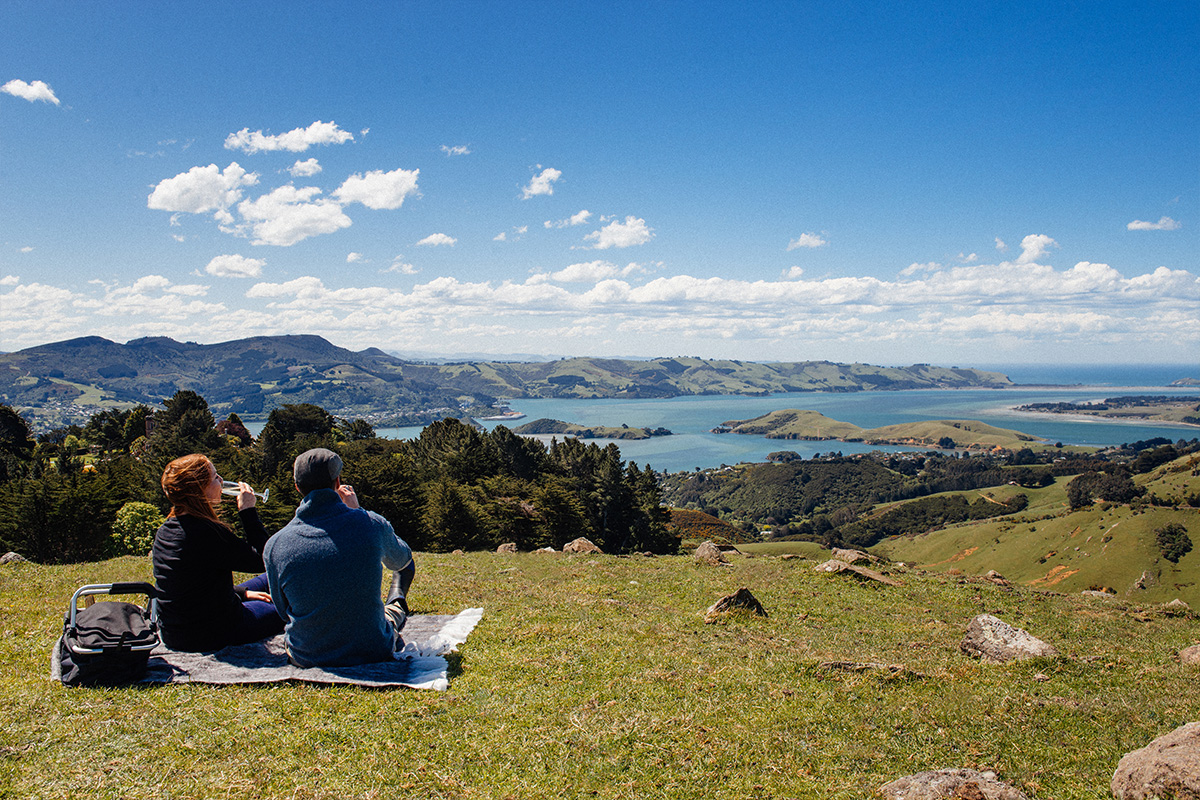 Camp Estate’s gentle walking track is an easy 10 minute meander through a working farm to a picnic spot like no other. Set high on the peninsula with spectacular views the length of the Otago Harbour and a panoramic view of the ever-beautiful city of Dunedin, this is a unique spot surrounded by rugged beauty.
